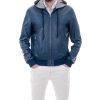 Bomber con cappuccio da uomo in vera pelle blu