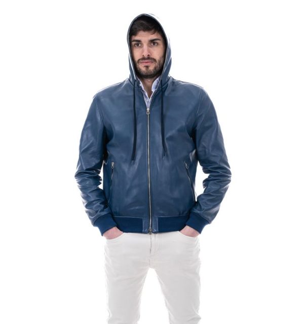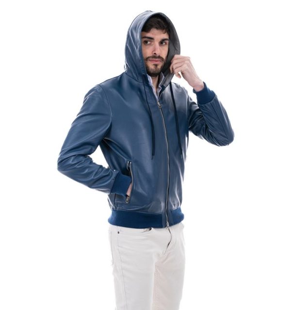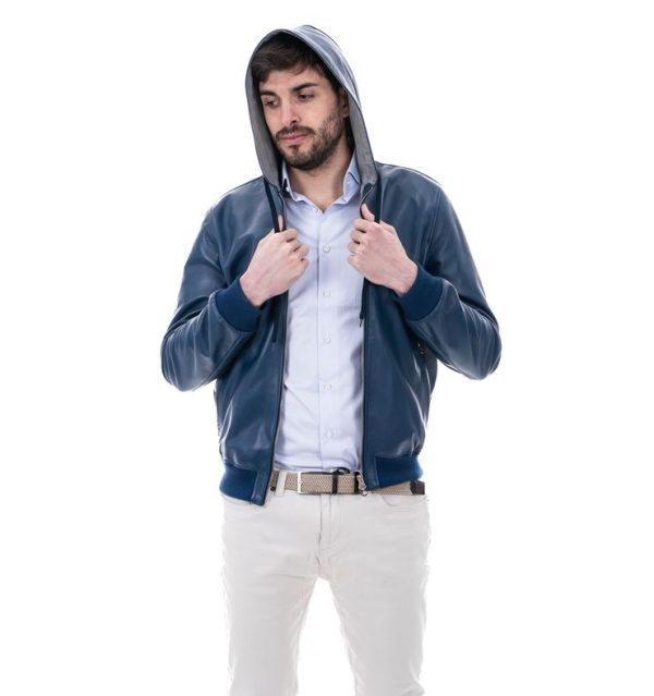 1 recensione per Bomber con cappuccio da uomo in vera pelle blu