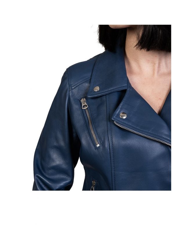 il chiodo in vera pelle blu prodotti nei laboratori di Pelletterie Borghese sono realizzati con pelle morbida di