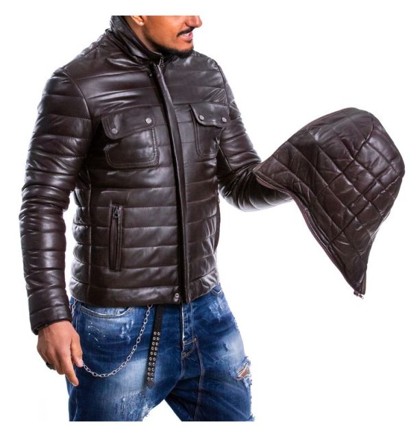 Piumino da uomo in vera pelle prodotto nei laboratori di Pelletterie Borghese sono realizzati con pelle morbida di